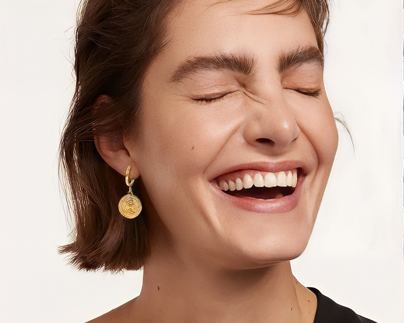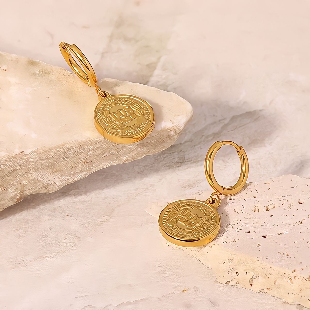 Queen Dangles feature a delicate embossed queen design in a shiny gold finish. These elegant earrings add a subtle touch of sophistication to your everyday look with effortless style and comfort.